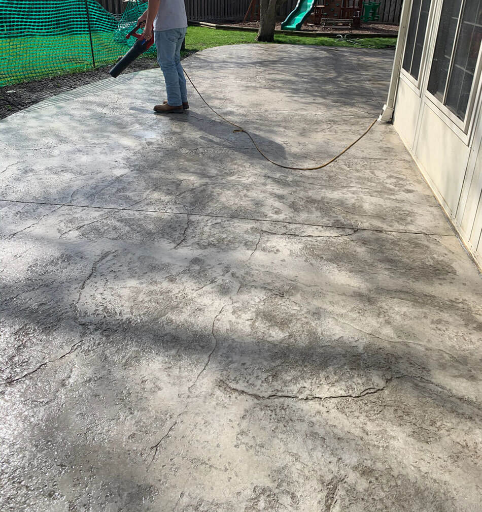 Get an affordable installation or replacement quote on a beautiful concrete patio with stamped or broomed patterns in any color you want